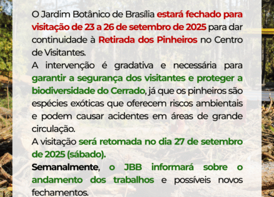 FECHAMENTO JBB – 23/9 A 26/9 Nota Informativa O Jardim Botânico de Brasília informa que permanecerá fechado para visitação entre…