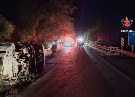 Quatro pessoas ficam feridas após carro bater e capotar no DF. Veja
