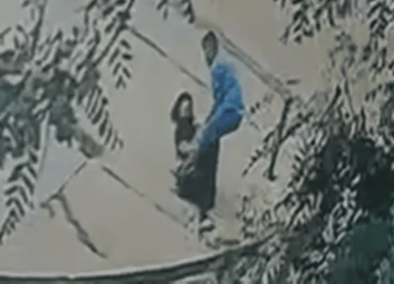 Câmeras de segurança flagraram o momento em que um homem agride violentamente uma mulher e, em seguida, passa com o…