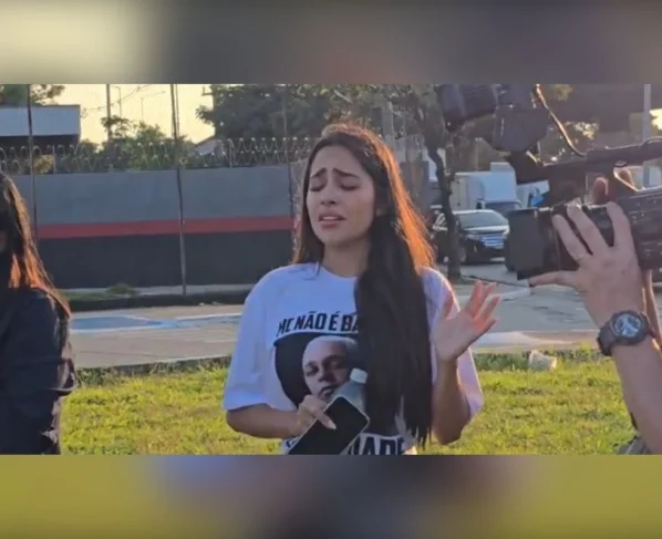 Após decisão, esposa de MC Ryan faz oração e chora em frente a prisão