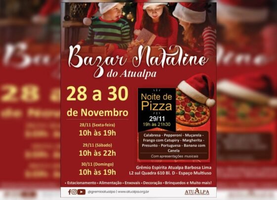 Neste final de semana, o Grêmio Espírita Atualpa Barbosa Lima organizará um bazar natalino e noite de pizzas beneficente. Nos…