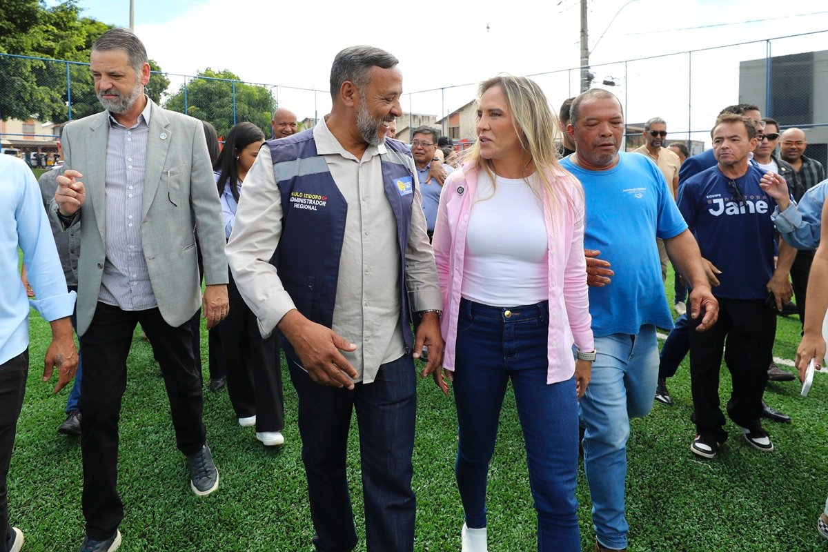 A governadora em exercício do Distrito Federal (DF) Celina Leão (PP) inaugurou o novo campo de futebol sintético na Vila Dnocs, em Sobradinho (DF), nesta quarta-feira (7/1).