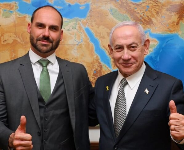 “Quem abençoar Israel será abençoado, e quem o amaldiçoar será amaldiçoado”, escreveu Eduardo, na legenda da foto com Netanyahu.