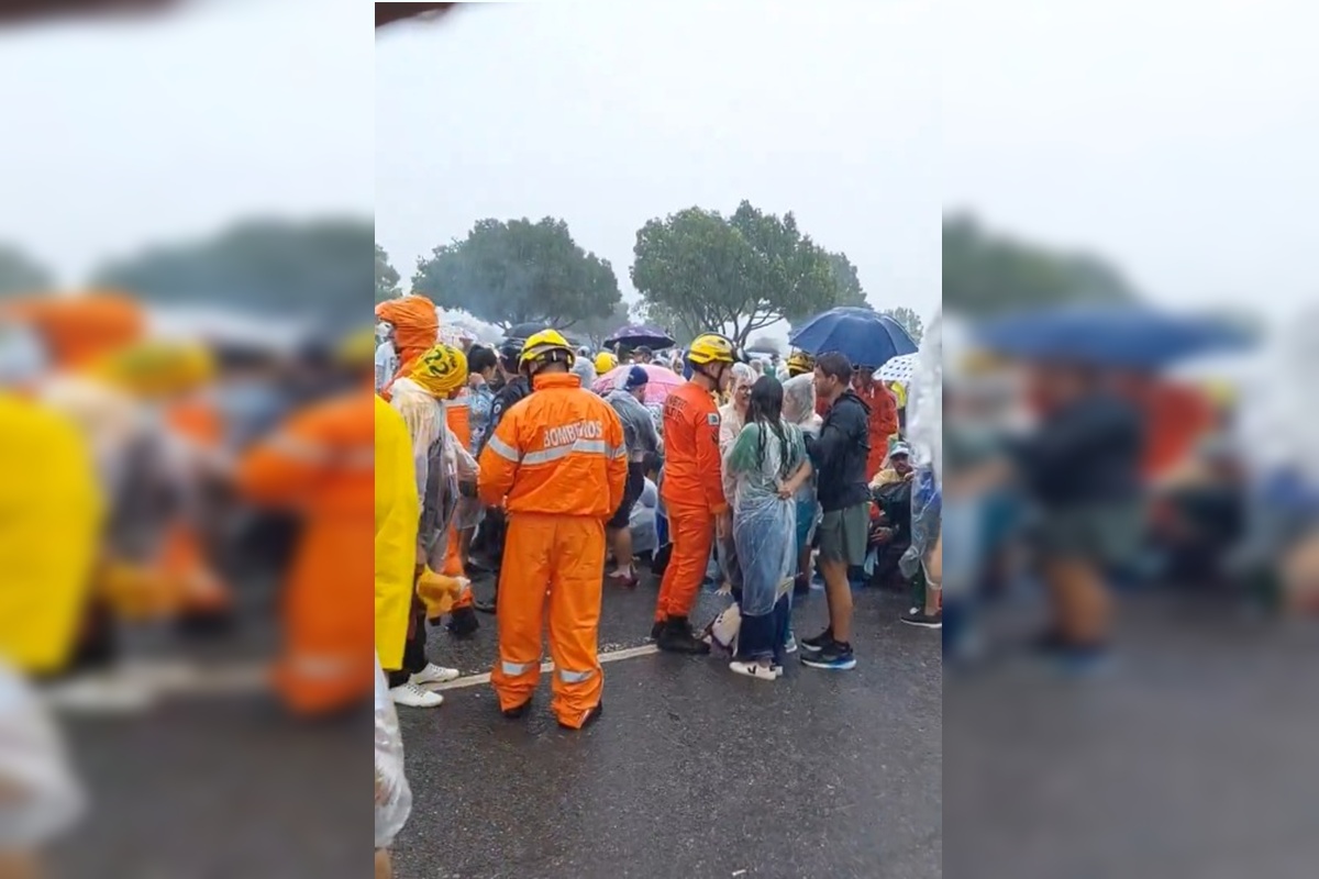 Já na chegada do ponto de encontro, um raio atingiu um guindaste e, após a descarga atmosférica atingir o chão, feriu várias pessoas que estavam ao redor do local.
