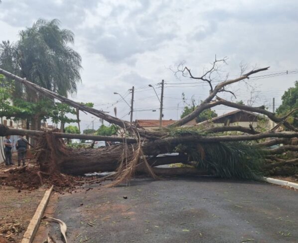 Árvore cai durante temporal e interdita Avenida Ipiranga