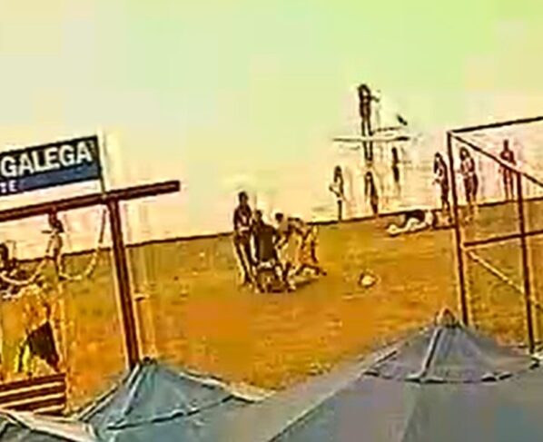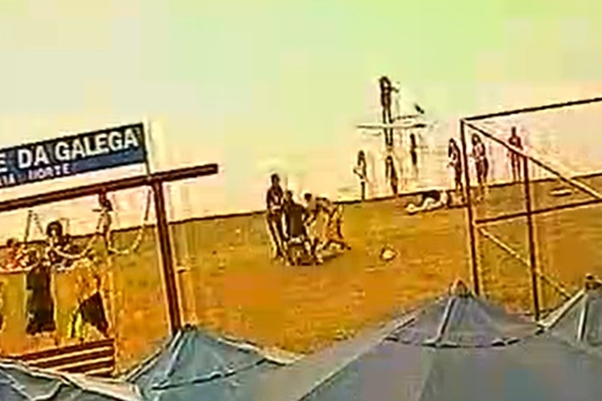 O vídeo mostra o momento em que os suspeitos cercam a vítima e depois a agridem.