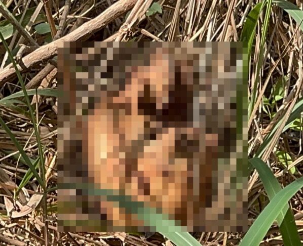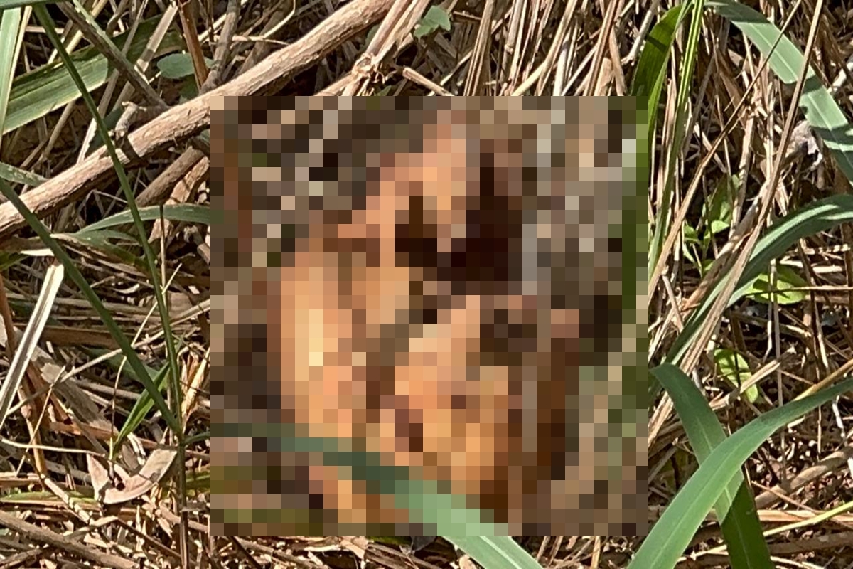 No terreno havia indícios de escavação recente. Durante a varredura, foram encontrados ossadas, um braço humano e parte de um tronco.