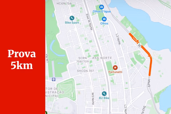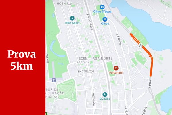 - 5 Km: percurso de ida e volta totalizando 5 km, com tempo máximo de duração de 60 (sessenta) minutos.