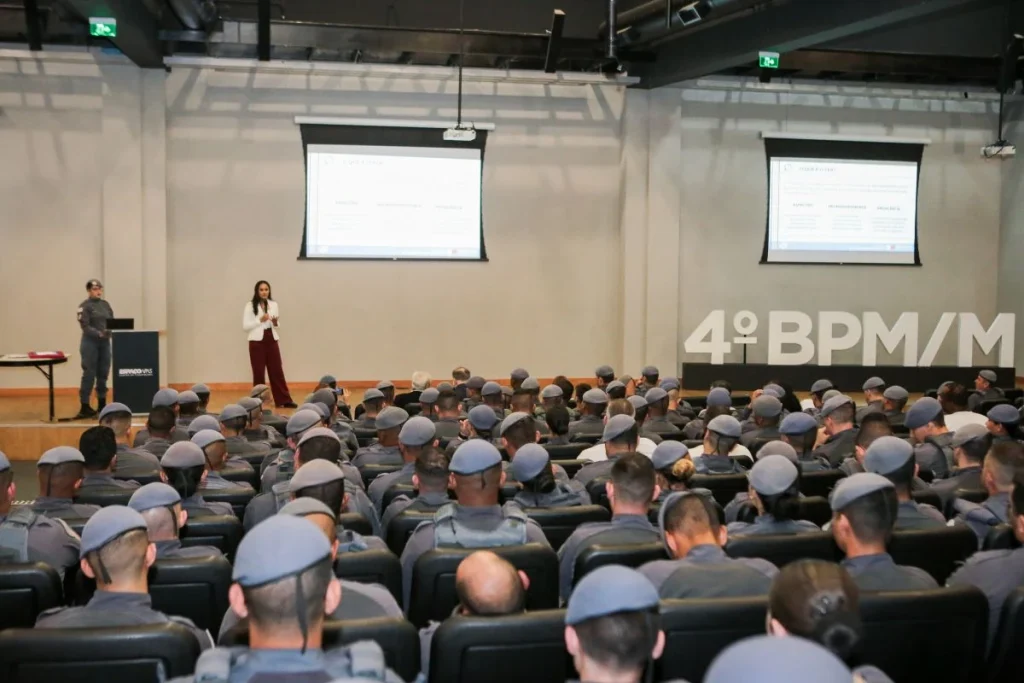 A psicóloga do Centro TEA Paulista Melissa Ferreira apresentou à plateia formada por PMs dicas de como agir para prevenir a escalada de conflito, as diferenças entre comportamentos desafiadores típicos e patológicos, quais as características de quem possui um transtorno neurodesenvolvimental, as melhores formas de se comunicar para evitar desentendimentos ou o agravamento do caso.