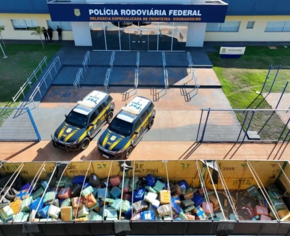 A abordagem ocorreu na BR-163, entre os municípios de Dourados e Caarapó. Durante a fiscalização, os policiais localizaram a maconha escondida em meio à carga transportada por uma carreta.