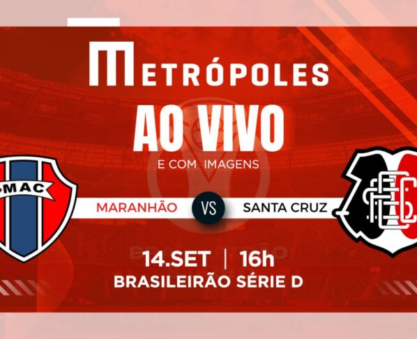 O Metrópoles transmitirá ao vivo e com imagens pelo YouTube a partida entre Maranhão-MA x Santa Cruz-PE, pelo Brasileirão Série D Will Bank. As equipes entram em campo neste domingo (14/9), às 16h, horário de Brasília.
