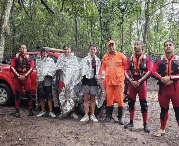 Os turistas foram encontrados após os bombeiros fazerem parte do percurso com uma viatura e depois a pé por uma trilha às margens do rio.