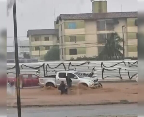 Na tarde desta quarta-feira (24/9), duas mulheres ficaram ilhadas após uma enxurrada causada pelas fortes chuvas atingirem Valparaíso de Goiás, cidade do Entorno do Distrito Federal, na altura da BR-040.